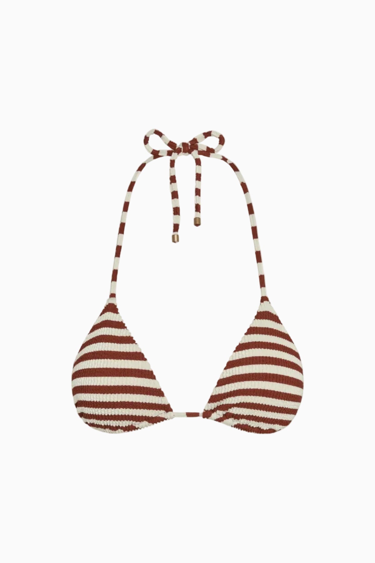 The Gia Triangle Top is a timeless essential for sun seekers. Designed with minimal coverage, this top features adjustable ties around the neck and back for a customizable fit. Removable cups offer optional shaping and support, making it easy to wear your way – perfect for poolside or beach days.