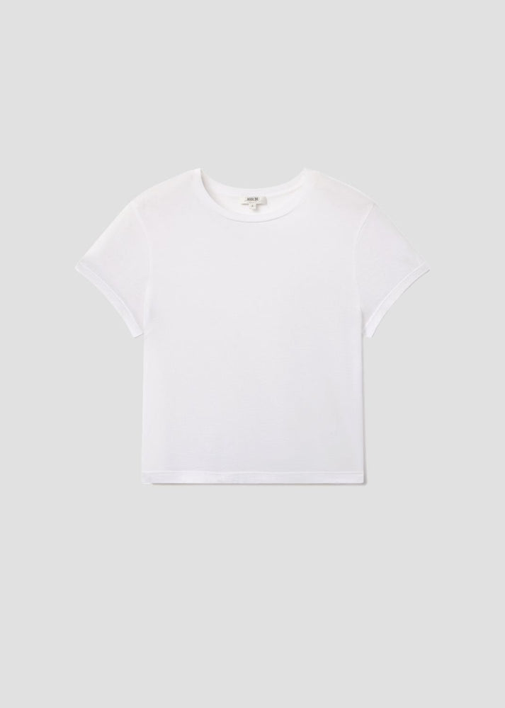 The Adine Tee is a soft, breathable cropped style, perfect for layering or wearing solo with cutoffs or jeans for a flattering look.