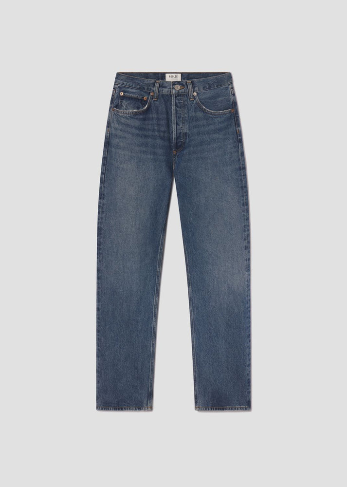The Kelly features a flattering high-rise waist that leads into a relaxed top block, falling into a classic straight leg with a vintage-inspired extended inseam.