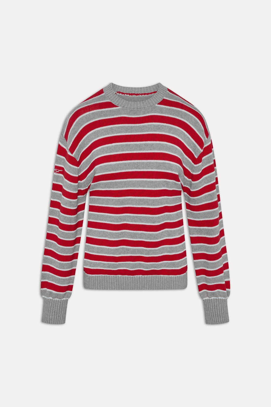 Sloane Cotton Knit Boyfriend Cloud Cover Stripe