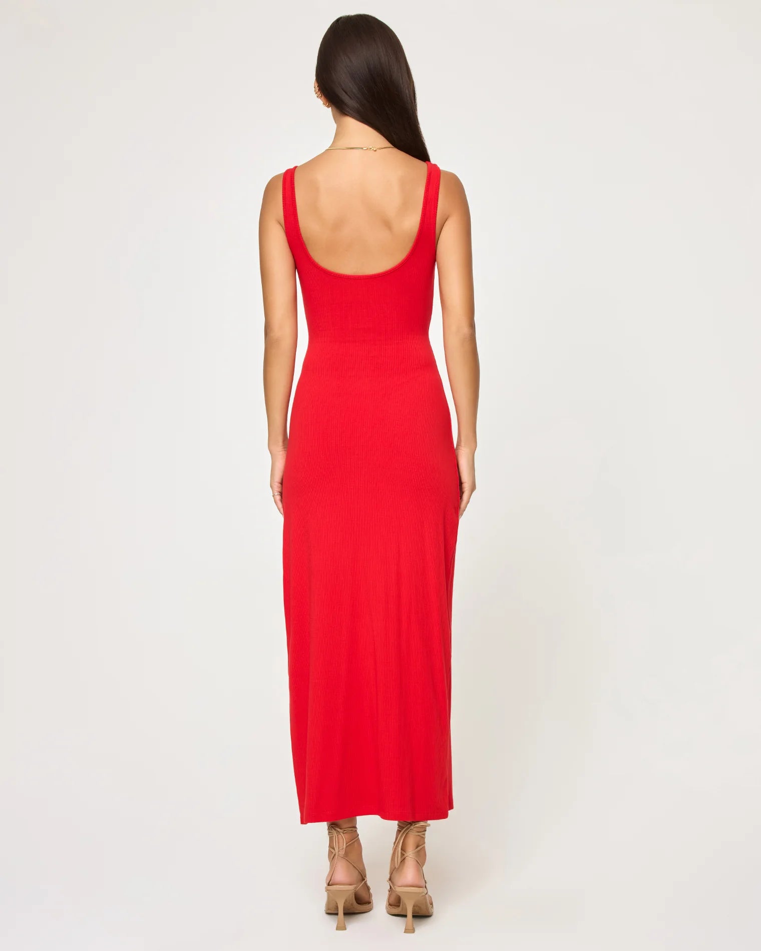 There's nothing like a fitted ribbed dress to elevate any occasion. The Camille Dress is infused with fun details like loop cutouts, a scoop neck, side slit and thick straps.