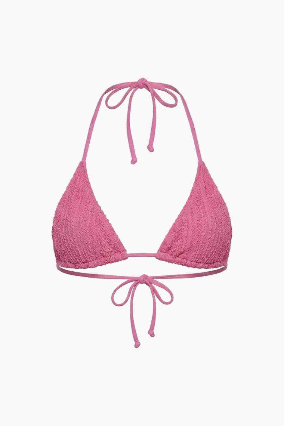 Our Benji Triangle Bikini Top is a sleek micro bikini top, refreshed in a bright pink hue for spring. Crafted from our adored weave fabric, Benji features smaller, streamlined cups for a minimalist fit, offering a more daring take than the Fifi Triangle Bikini Top. Refined yet playful, this modern essential is designed for beach or boat days, made to soak up the sun in style.