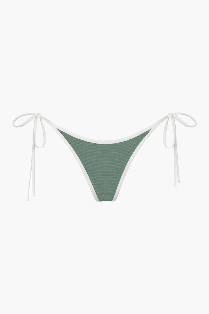 Timeless tie-side bikini bottom with white contrast trim. Low-rise scoop front, adjustable side ties, snag-resistant Micro Rib fabric. Runs small; size up.