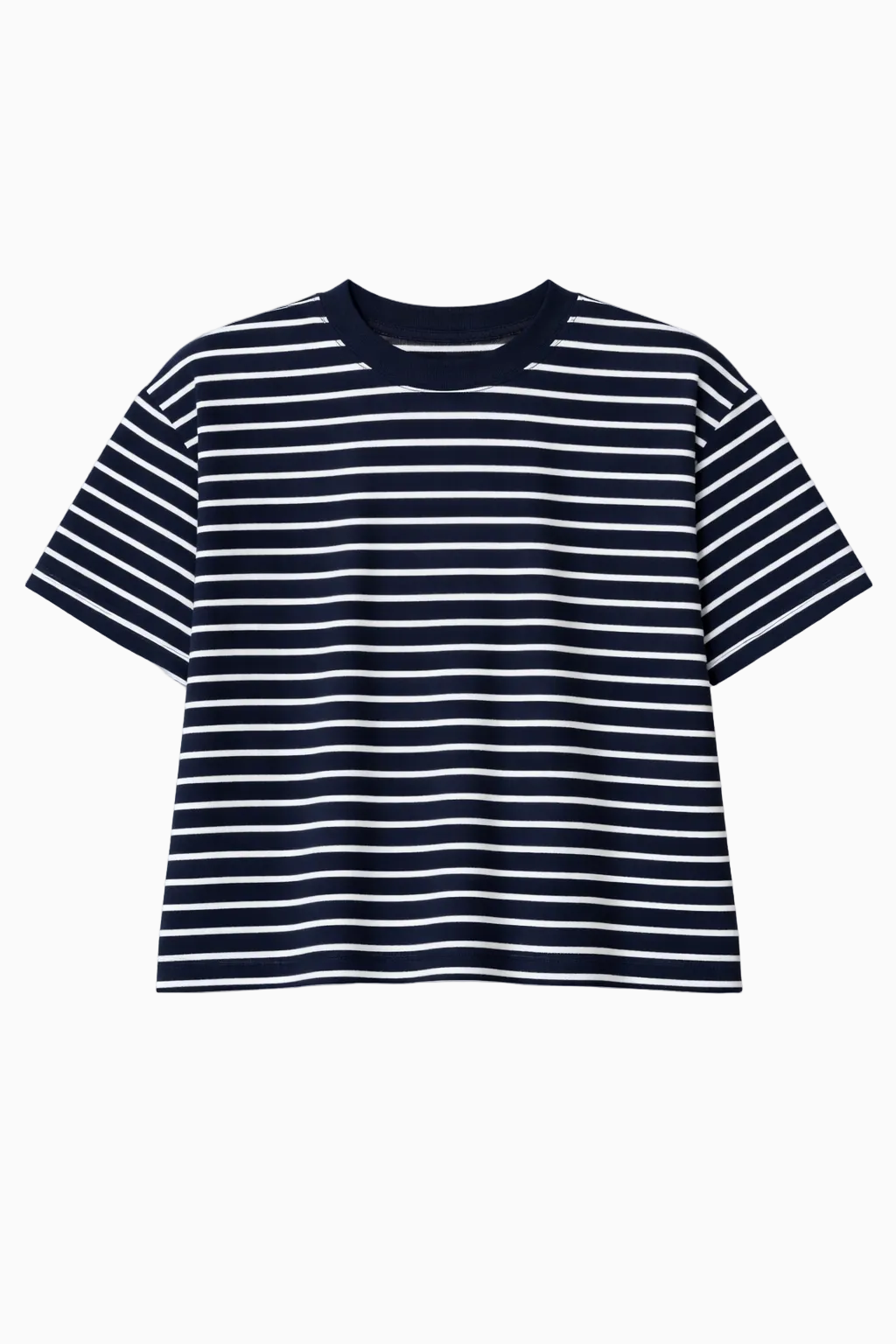 Mae Cropped Tee Navy White Stripe - XS is backordered and will ship as soon as it is back in stock.